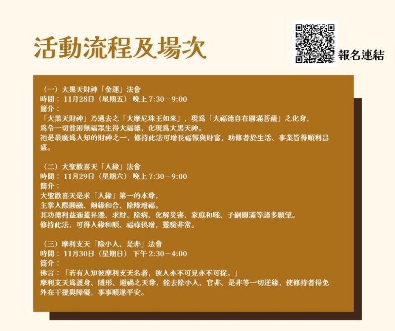 (三) 11月30日 (日) 下午 2:30 - 4:00 摩利支天「除小人、是非」法會